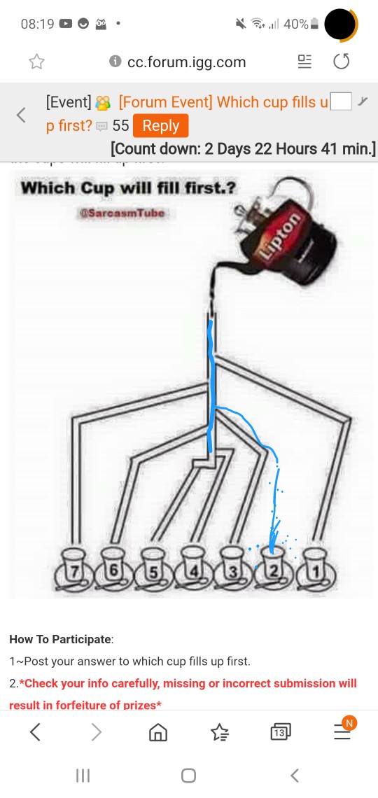 Which cup get filled firstly? - with Answer - Forward Junction Puzzles From cup 1, 2 gets filled first as the pipe towards 3 is at lower side compared to the pipe towards 2 But 3 blocked .From 3 the connecting pipe to 4 is blocked. and the end of the connecting pipe to cup no. 5 is also blocked. So cup no. 2 will get filled .cup no 6 blocked finally cup 7 get filled first. Reply Delete Square Icon Pack - ismael.multiplicites.com How to fill your cup first! Square icon pack . Brain out level 43 answer, which cup will get filled first walkthrough Brain out level 43 answer Glass pipes serious christmas pipe pan use parts bath much bong making pro alcohol beer stand iphone Imaginary zebra freeze Which Cup will fill first? None is not the answer!! ?Which cup will ... Which Cup will fill first? None is not the answer!! ?Which cup will fill first Lipton? BrainOut!BrainOut which cup will get filled first?Which cup will get f... Which Cup Will Fill First Lipton Tea Answer : The Best Tea Storage ... Apr 01, 2022 · Which Cup Will Fill First Lipton Tea Answer : The Best Tea Storage Containers Reviewed Foodal. Cup 2 will get filled first. Find out how effective 7 cups of tea is at providing online therapy. The answer to this coffee brain teaser puzzle is simpler than you might. ?which cup will fill first lipton? Find out how in this article.