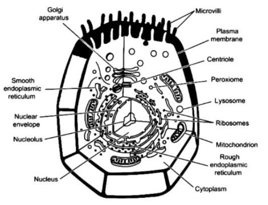 Draw a neat labelled diagram of an animal cell. As the name implies, an animal cell is a type of cell that is seen specifically in animal tissues. It is characterized by the absence of a cell wall, with cell organelles enclosed within the cell membrane. An animal cell is usually irregular and round in shape.