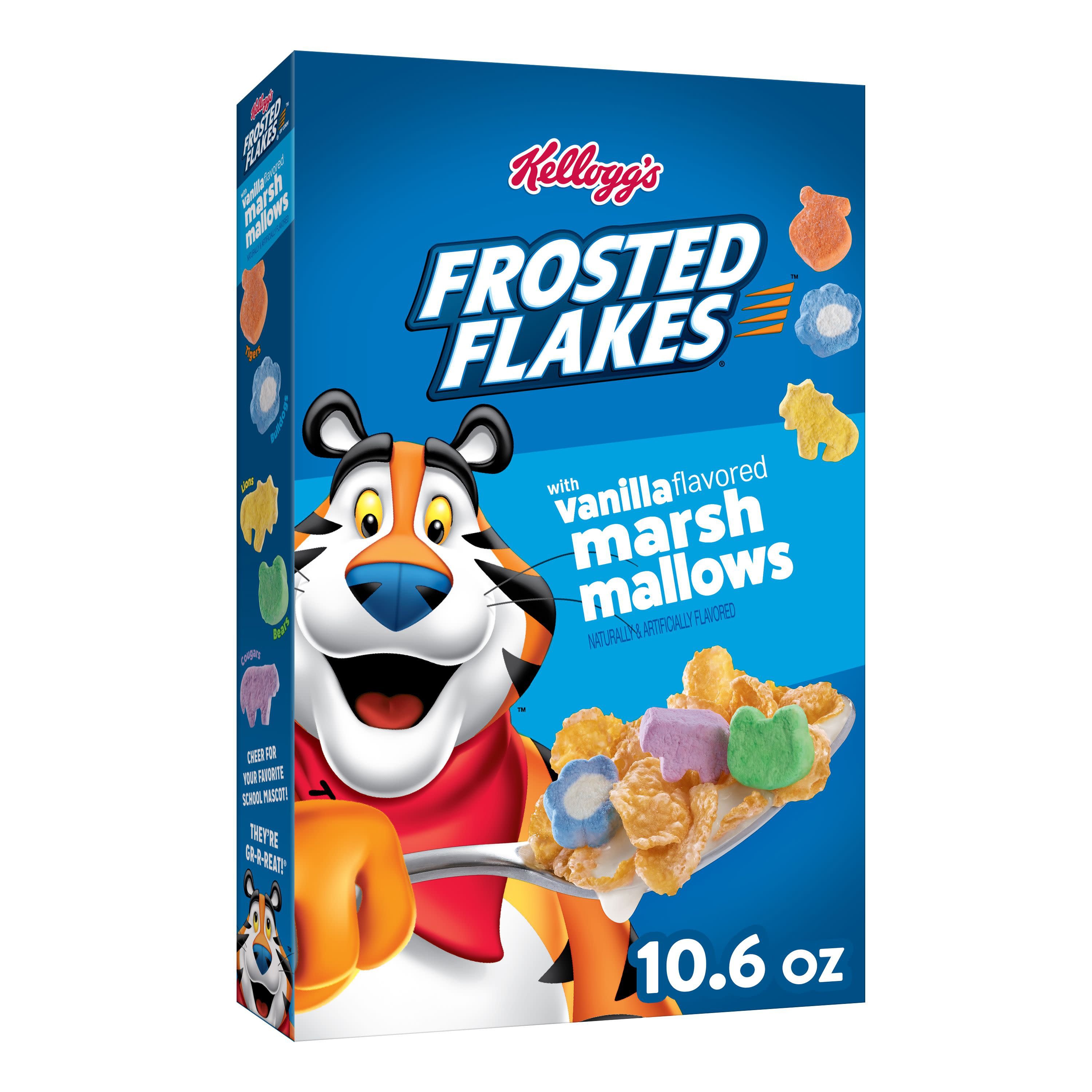 Kellogg's Frosted Flakes Cereal, Original, 13.5oz - Walmart.com Kellogg's Frosted Flakes Breakfast Cereal, 8 Vitamins and Minerals, Kids Snacks. Start your morning right and enjoy the irresistible taste of crunchy corn flakes with a sparkle of sweet frosting in every spoonful. Treat your family to GR-R-REAT-tasting, crunchy flakes of corn sprinkled with sweet frosting; Perfect for both kids and adults.