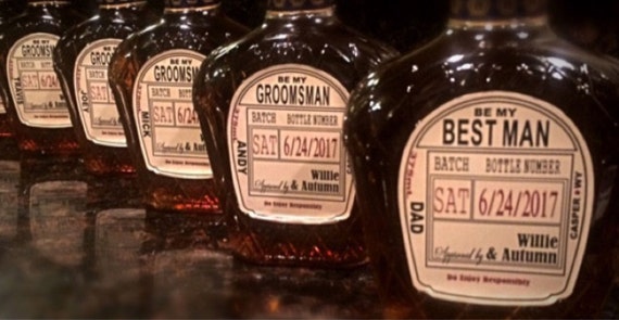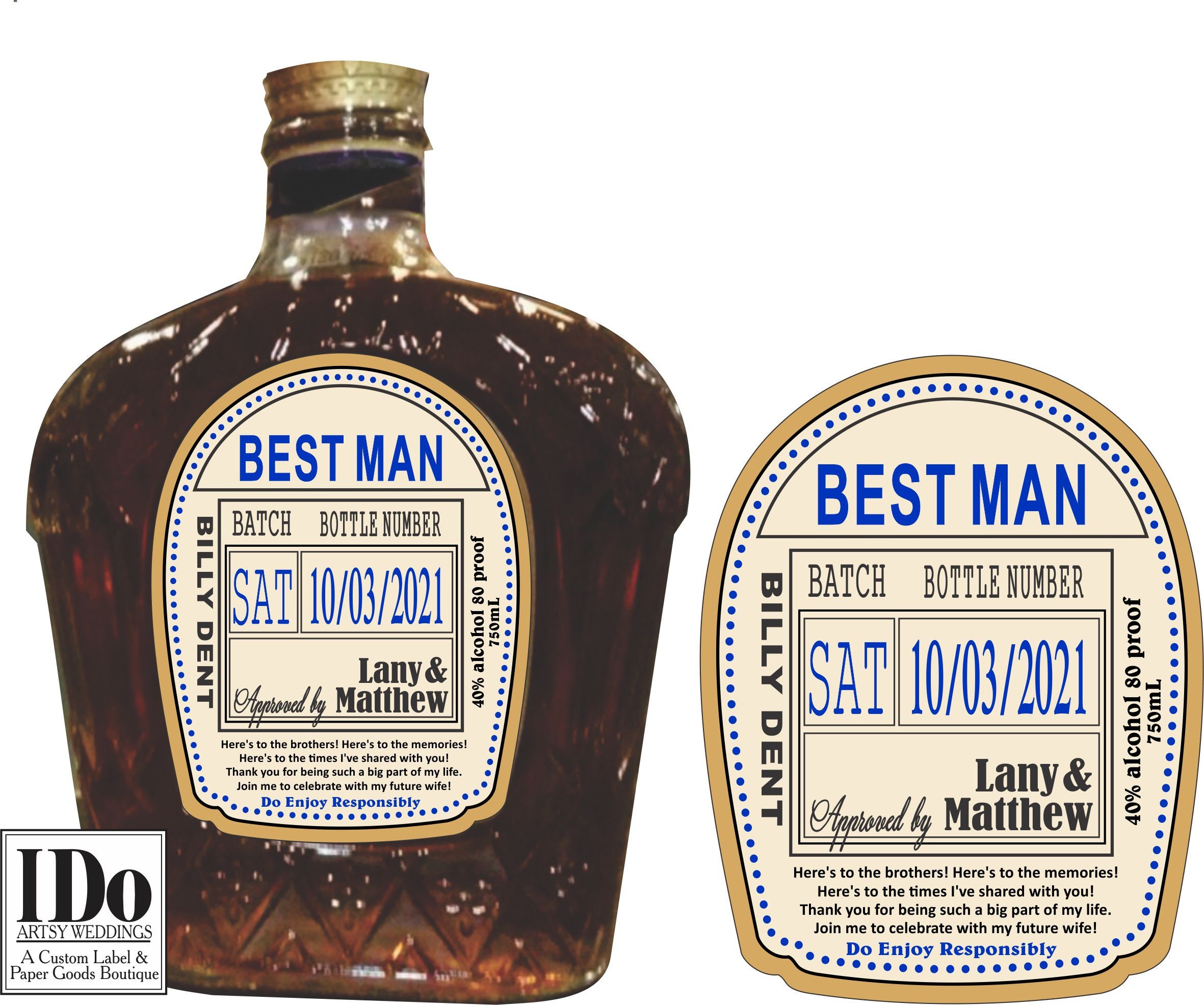 Grooms Labels - Personalized Groomsmen & Best Man Whiskey Label Get the ready for the Big Day! Add these labels to a favorite whiskey, liquor or wine and then ask them to stand by you! **Contact us prior to placing your order, idoartsyweddings@comcast.net, if a custom quantity is required. This Listing Includes: 1 ~ Custom Groomsman Modern Liquor Label(liquor and decorations are not included) -... Personalized Groomsmen Whiskey Labels | Labelyourlife Personalized Groomsmen Fireball Whiskey Labels $8.00 Available Options Number of Labels Label size Proof requested YesNo Groomsman name (s) Bride and Groom name Wedding date and/or location, if desired Ask or Thanks label Ask Additional notes Description Reviews Will you be my Groomsman Custom Whiskey Label | XOXOKristen Labels are meant to be applied on a clean bottle. Remove the old labels first and then apply the now ones. They should not be applied over the old, existing label. Easy instructions for removing the old labels: Step 1. Soak the bottle in a big container filled with warm water Step 2. Add a couple of tablespoons of baking soda Step 3.