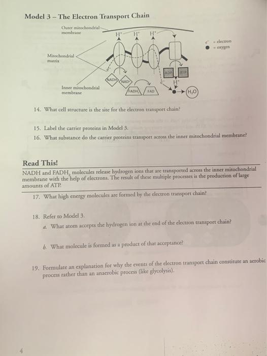 13 Cellular Respiration-S - North Kitsap School District Label the carrier proteins in Model 3. 16. What substance do the carrier proteins transport across the inner mitochondrial membrane? Read This! NADH and FADH 2 molecules release hydrogen ions that are transported across the inner mitochondrial membrane with the help of electrons. The result of these multiple processes is the production of large