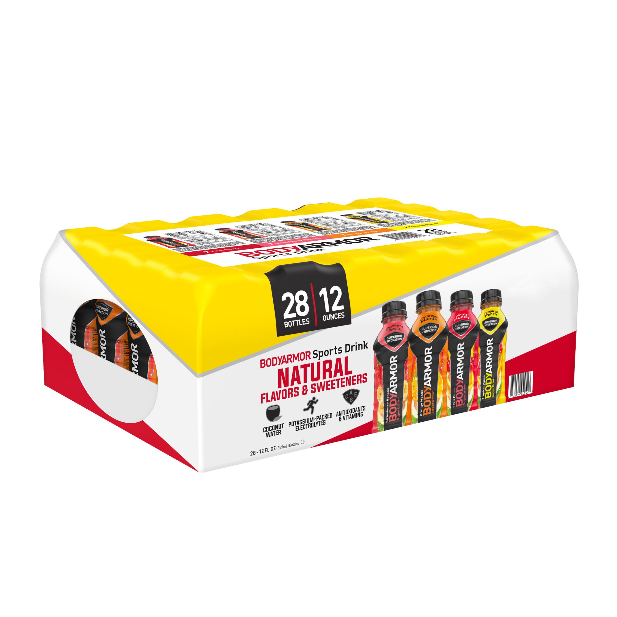 BODYARMOR Sports Drink, Variety Pack, 20 ct./16 oz. BODYARMOR Sports Drink, Variety Pack, 20 ct./16 oz. ( 120) Item: 167720 Model: 858176002645. $19.99. Product Features: Natural Flavors & no colors from artificial sources. Made with 10% coconut water. Potassium-packed electrolytes to help prevent muscle cramping and maintain fluid balance.