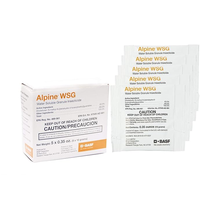 BASF 4316277914 WSG-200 Gram Tip and Pour Bottle Alpine WSG 200G BestViewsReviews Ranking and Score for BASF 4316277914 WSG-200 Gram Tip and Pour Bottle Alpine WSG 200G This product received a total score of 9.12 out of 10, based on review sentiments and user opinions related to 9 features: Ease of use Effectiveness Longevity Overall satisfaction Packaging Portion size Quality of material Scent Value for money BASF 59020863 Alpine WSG 5 x 0.35oz Insecticide, White - amazon.com This item: BASF 59020863 Alpine WSG 5 x 0.35oz Insecticide, White $26.82 PT Alpine Flea & Bed Bug Pressurized Insecticide - 20 oz. $28.02 ($1.40/Ounce) Alpine CockRoach Gel Bait 4 (30 gram) Tubes $31.50 Alpine WSG Water Soluble Granule Insecticide 10g Packet 197 8 offers from $8.95 Alpine WSG - 200 Gram Tip and Pour Bottle - amazon.co.uk Product description Alpine WSG Water Soluble Granule has a very flexible label. This non-repellent insecticide may be used inside or outside killing a multitude of insects, including beg bugs, ants, fleas, house flies and german roaches. Amazon.com: alpine wsg insecticide 36 results for "alpine wsg insecticide" RESULTS Price and other details may vary based on product size and color. BASF 59020863 Alpine WSG 5 x 0.35oz Insecticide, White 151 $2595 Get it as soon as Fri, May 27 FREE Shipping by Amazon More Buying Choices $25.00 (8 new offers) Amazon's Choice Alpine 1085 WSG 500g Jar, Clear 96 Save 6% $15706$167.77