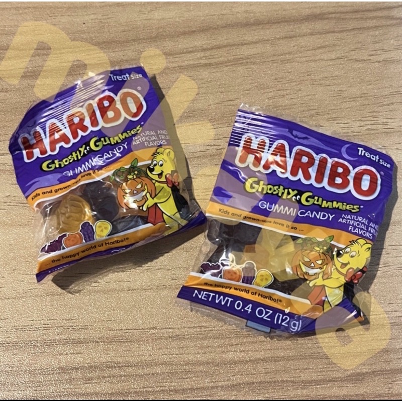Haribo Trick or Treat 63oz - Walmart.com Have the best house on the block with HARIBO's Trick or Treat Mix. Each bag includes 150 mini bags of spooky shaped Ghostly Gummies, mini Sour Vampire Bats, and your everyday favorites, Happy Cola, Twin Snakes and HARIBO GOLDBEARS. HARIBO's Tirck or Treat Mix is the perfect Halloween treat!