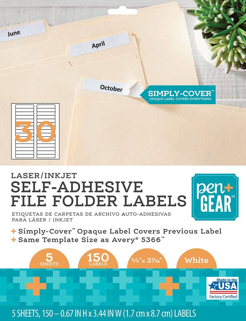 Pen + Gear Laser/Inkjet White File Folder Labels with SIMPLY-COVER Block-Out Permanent Adhesive, 30 Labels per Sheet, 750 Labels