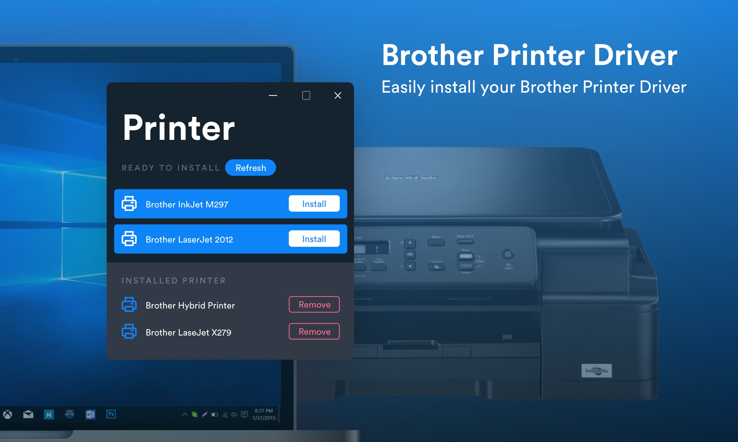 › home › printers-faxPrinters, All-in-Ones and Fax Machines | Home Office | Brother Brother Certified Refurbished Products. Every Brother Certified Refurbished product meets rigorous standards, offering “like new” functionality at savings of up to 20%. Browse our refurbished printers, scanners, sewing and embroidery machines, and more. Driver download for Brother printers - FreePriniterDriverDownload.org Brother is a well known name in printing technology. Here is the drivers list we have available for the Brother printer models. Search driver by printer ... › products › hll2390dwBrother HLL2390DW | Monochrome Wireless Laser Multi-Function ... The Brother HL-L2390DW is a reliable, robust and affordable monochrome laser printer with copying and scanning capabilities that is perfect for the home or small office. The flatbed scan glass provides convenient copying and scanning. Download Brother Printer / Scanner drivers for Windows Brother Drivers. 2,213 drivers total Last updated: Jan 30th 2022, 09:59 GMT RSS Feed. SEARCH. Latest downloads from Brother in Printer / Scanner. sort by:.