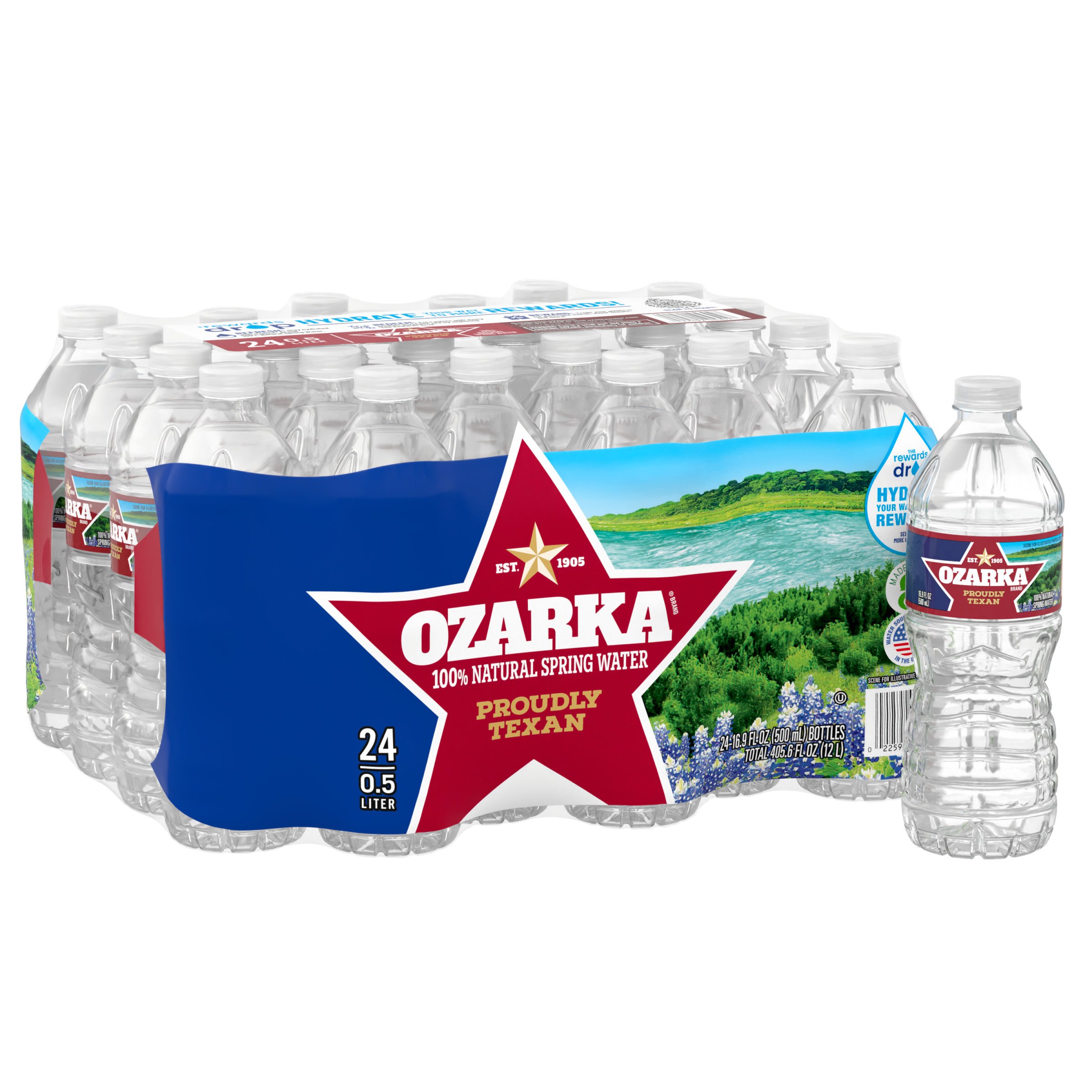 OZARKA Brand 100% Natural Spring Water, 16.9-ounce plastic bottles ... Ozarka Assembled Product Weight 37.8 lbs Assembled Product Dimensions (L x W x H) 10.80 x 20.50 x 8.50 Inches Ingredients Ingredients 100% natural spring water Report incorrect product information Earn 5% cash back on Walmart.com. See if you're pre-approved with no credit risk. Learn more 8 Ounce Bottled Spring Water | Ozarka® Brand 100% Mountain Spring Water Stock the fridge with Ozarka® Brand 100% Natural Spring Water. Affectionately referred to as minis, our 8 fl oz bottled waters are especially great for pairing with meals early in the day. ... Product bottle size. Product bottle unit. Nutrition facts Nutrition; Amount per serving Per serving Per bottle Calories 0mg 0%: Total fat: 0mg 0% ... Ozarka 100% Natural Spring Water 16.9 oz Bottles - H-E-B To be able to label our product as "spring water," we have to satisfy stringent standards — standards we proudly meet or exceed. That's why every bottle of Ozarka Brand water is labeled as 100% natural. Highlights. Kosher. Nutrition and ingredients. Nutrition Facts. 0 servings per container. Serving Size. 0.00 % Daily Value * Total Fat ... Ozarka 100% Natural Spring Water (20oz / 28pk) - Sam's Club Ozarka spring water is 100% natural spring water with minerals for a great taste Contains 24% less plastic than the average 20 ounce bottle Can be used in a vending machine Shipping only available to select locations in these state (s): (AR, KS, LA, MO, MS, NM, OK, TN, TX) About this item Product details Specifications